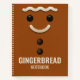 Un cahier de Noël au pain d'épices mignon et festif présentant un biscuit au gingembre souriant sur un fond chaud de vacances.
