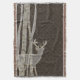 Couverture orientée de jet de belle nature faite dans un brun sur le motif floral brun de damassé. Les graphiques semi transparents des arbres de bouleau grands et des cerfs communs jetant un coup d'oeil derrière eux, décore l'aile gauche de la couverture. Personnalisez ou supprimez les initiales de regard rayées, sur l'arbre. Fait une belle idée de cadeau.