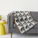 Cette couverture de jet comporte un motif abstrait de répétition des pingouins africains adorables se tenant sur un rebord rocheux. Ils sont des oiseaux aquatiques et incapables de voler dont les ailes ont les nageoires devenues. Chacun a une rayure noire et des taches noires sur le coffre. Le motif des taches est unique pour chaque pingouin, juste comme les empreintes digitales humaines. Elles ont les glandes roses au-dessus de leurs yeux et les pieds roses et noirs.