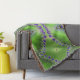 L'oeuvre abstraite, verte et violette de ZoeSPEAK sur cette couverture Throw a été réalisée à partir d'une photo originale d'une feuille sur un plante kalanchoe. Les petites parties sur le bord de la feuille (poussées au violet dans cette abstraction) tombent et deviennent de nouveaux plantes.