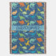 Motif de silhouette de dinosaure personnalisé. Tyrannosaurus Rex, titanosaurs, Triceratop, rapaces, Ankylosaurs, Dino-Oiseaux, Stegosaurus, Apatosaurus, Pteranodon et plus dans un motif coloré à l'arrière-plan bleu, et dinosaures dans vert, bleu, jaune et orange.