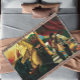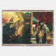 Reine égyptienne avec un dragon rouge sur son épaule. La Reine tient une orbe d'univers. Un lion noir avec des ailes est sur une montagne avec un sphinx derrière.