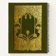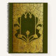 Une couverture victorienne en lin vert sauge et un design en feuille d'or de feuilles de chêne stylisé.