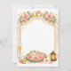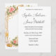 Une couverture de carton d'invitation de mariage luxueuse et romantique présentant des détails floraux élégants, des alliances dorées et un cadre doré raffiné.