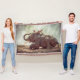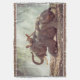 Une couverture tressée montre un jeune garçon asiatique, allongé à l'arrière d'un grand éléphant incliné, lisant un livre. Le garçon est torse nu, portant des shorts et des chaussures marron. L'éléphant est gris, avec de longues défenses, et est allongé sur un lit de feuilles. L'arrière - plan est une scène de forêt floue. La couverture a un bord frangé. L'image est projetée avec un éclairage doux et diffuse, lui donnant une atmosphère chaleureuse et nostalgique.