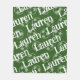 Célébrez votre joueur ou passionné de football favori avec cette couverture de football en toison personnalisée. Un motif de balles de football partout sur un arrière - plan vert a préparé le terrain pour un nom personnel. Ça fait un grand cadeau ! Créé par Simply Farmhouse Press.