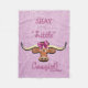 Personnalisez cette couverture en polaire "One of a Kind" de petite fille ! Il présente une vache longhorne comique portant une jolie cabote violette sur un Arrière - plan violet clair, entourée par les mots...."Petite Femme" Cette couverture en polaire "Petite Femme" a un Coussin et une Lampe correspondants ! Design D'Art Original Par L'Artiste Kerry Miller !