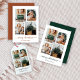 Cette couverture de vacances simple mais ultra moderne comprend quatre de vos photos personnelles préférées dans une grille de photos à look unique et superposé. Le design vert et blanc de la forêt dit "joyeux noël" en élégante typographie manuscrite tendance, et a une place pour votre nom dans une coordination sans serif police.