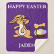 Toison Sherpa violette avec nageoire et panier d'oeufs avec nom personnalisé.