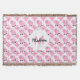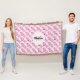 Enfants Monogrammes Pink Pig Motif Animal Throw Blanket. Magnifique petit motif de cochons roses dans des cercles blancs sur un arrière - plan rose. Le joli arrière - plan animal de ferme a un cercle blanc avec le nom et l'initiale monogrammée en noir et rose. Amusant décor de cochon d'animal de ferme pour enfants, adolescents et ados.