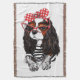 Caractéristiques de conception ce qu'un chien cavalier d'épagneul du Roi Charles s'est habillé dans un cardigan rayé, lunettes de soleil rouges et avec un bandeau de point de polka.