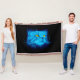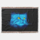 Un visage de chat bleu fractalisé avec des yeux jaunes étonnants contre un arrière - plan noir.