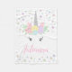 Cute couverture de licorne avec adorable visage de licorne et de jolis points pastel arc-en-ciel avec de la place pour le texte personnalisé.