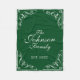 Couverture vert-foncé et blanche de nom de famille personnalisé d'ouatine avec les coins tourbillonnants. Remous et conception fleuris riches de décoration de flourish. Conception élégante de modèle des textes avec l'année faite sur commande de l'établissement. Est. En 2015 typographie de fantaisie établie de calligraphie de manuscrit 2016 2017 etc. avec des remous pour votre nom de famille. Couleur personnalisable d'arrière - plan. Faites votre propre édredon unique avec le nom de famille. Idée faite sur commande mignonne de cadeau de faveur de couverture pour épouser, douche nuptiale, fiançailles, anniversaire, baby shower, housearming, fête d'anniversaire, rassemblement de réunion de famille, décor à la maison chic de BBQ etc. pour le sofa, divan ou lit dans la chambre à coucher. Créez vos propres pour les ménages mariés, l'épousez nouvellement, le mari et l'épouse, les jeunes mariés, les nwelyweds, les jeunes-mariés, lui et elle, le M. et la Mme, les grands-parents etc.