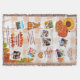 Celebrate gratitude and togetherness with this cozy Family Thanksgiving Memories blanket, perfect for showcasing all the moments that make your holiday special. The background features a warm, autumn-hued checkered picnic blanket, evoking the feel of a festive fall gathering. Scattered across the layout are delightful Thanksgiving icons like pumpkin pie, sunflowers, turkeys, and pumpkins. Space for approximately eight cherished family photos is grouped casually in clusters of 1s, 2s, and 3s, creating a relaxed and scrapbook-style aesthetic. Light-hearted, editable family quotes are nestled among the photos to bring a touch of humor and warmth. Near the bottom, a customizable text area framed by autumn leaves lets you add your family name or a personal message. This makes a perfect heirloom piece or heartfelt holiday gift!