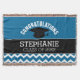 Un design amusant pour célébrer le diplômé. Ajoutez un nom et une année pour rendre une fête de graduation personnelle favorable ou memento. Design classique avec capuchon de graduation et arrière - plan de couleur solide avec motif chevron.