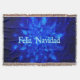Un essaim de flocons de neige fractaux bleus. Le texte espagnol "Feliz Navidad" apparaît en bleu et blanc éclatant.