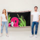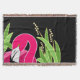 Oiseau stylisé d'un flamant parmi les feuilles verts décoratifs contre un arrière - plan noir