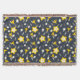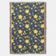 Fleurs et feuilles rétro en blanc, gris & ocre jaune sur un arrière - plan bleu minuit. La couleur Arrière - plan peut être modifiée.
