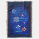 Dessin de fleurs, arrière - plan bleu, points dorés. Humeur d'été. Anny fois.
