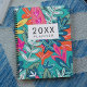 Moderne et élégant planificateur hebdomadaire et mensuel, avec une couverture fleurie colorée.