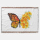 Orange, detailed monarch butterfly with wing decorated with yellow, vibrant California poppy on white background.