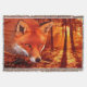 Renard rouge dans la forêt d'automne. Arbres et lumière du soleil chaude.