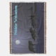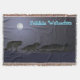 Une nuit d'hiver froide et illuminée par la lune; un sac à loup sur le rôti. "Frohliche Weihnachten" apparaît en bleu et blanc éclatant.