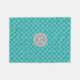 Couverture faite sur commande de monogramme dans le motif marocain turquoise de bleu de turquoise, de gris de charbon de bois et blanc de quatrefoil de trellis.