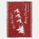 Ajoutez une touche saisonnière amusante à votre maison avec cette couverture de jetons rouge et blanc personnalisée. La couverture est ornée d'un arrière - plan rouge avec un message de Noël joyeux blanc et un texte Ho Ho Ho, votre nom de famille, et le Père Noël volant dans son traîneau avec des rennes. Cette couverture jetable fait un grand anniversaire personnalisé, douche nuptiale, mariage, Noël, ou tout autre cadeau de vacances.