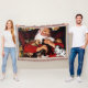 Une illustration du Père Noël, barbe blanche et lunettes, est assise sur une chaise rouge. Il est entouré de plusieurs chiots et chatons, dont certains dorment sur ses genoux et ses épaules. Un sapin de Noël aux ornements colorés est visible dans l'arrière - plan. L'illustration est réalisée dans un style réaliste avec un éclairage doux et diffuse, lui donnant une atmosphère chaleureuse et confortable. La palette de couleurs est dominée par les rouges, les verts et les marron, typiques des thèmes de Noël. La composition est équilibrée, avec le Père Noël comme figure centrale et les animaux disposés autour de lui. La texture apparaît lisse, ressemblant à une peinture numérique ou à une impression de haute qualité.