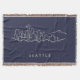 Caractéristiques de conception ce un croquis tiré par la main de l'horizon de Seattle sur un arrière - plan bleu-foncé.