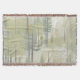 Une illustration d'art d'imaginaire de style moderne, très agréable, représente divers pins verts, grands, clairs, moyens et foncés, avec un arrière - plan crémeux