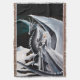 Femme aux cheveux blancs avec son dragon blanc dans l'hiver arctique avec les aurores dansant dans le ciel nocturne derrière eux.