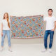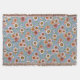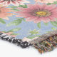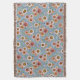 Un design moderne original présentant des bouquets colorés de marguerites africaines roses, blush et pêche, également appelées Gazania, sur fond bleu.