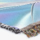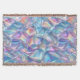 Un design géométrique métallique, bleu, orange, or et violet irisé, parfait pour une couverture.