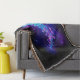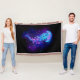 Grande méduse bleue, artistiquement dessinée, brillante, brillante, avec de longues tentacules sur arrière - plan noir avec bioluminescence violette. Méduse brillante.