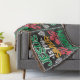 Cette Blanche à Throw noire porte le nom "JESUS" en haut dans une grande police verte avec un contour blanc et des éléments décoratifs blancs. Ci-dessous, "Is My" est dans une police blanche plus petite au-dessus de "SAVIOR" dans une police surlignée jaune et rouge. L'expression "Not My" est écrite dans un script rouge fluide, séparé de "RELIGION" ci-dessous par une ligne de points blancs. "RELIGION" s'affiche en gras vert. Cette conception met l'accent sur une relation personnelle avec Jésus par rapport à la religion organisée.