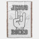 Cette couverture de jetons a un design qui comprend une police d'impression de l'avant-ligne de l'Annuaire avec des lettres blanches en noir avec l'expression "Jésus Rocks" avec un geste à la main rocker et des symboles flash de chaque côté avec une croix au-dessus dans ce thème de fête de la Bible basée sur la foi. Cette couverture est faite à partir de 75% coton et 25% polyester avec une sensation très douce lavage à la main recommandé.