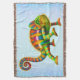 L'illustration fine originale dans des couleurs psychédéliques d'un caméléon masculin de panthère par l'artiste Carolyn McFann a imprimé sur une couverture élégante de jet pour tous ce qui aiment des caméléons et d'autres lézards.