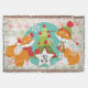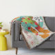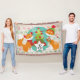 Customisé Red Fox vacances de Noël jetez une couverture, coloré, amusant, mignon, et gai! On y trouve deux renards rouges avec casquette et foulards d'hiver, un sapin de Noël avec des boules rouges, et des flocons de neige blancs sur un arrière - plan bleu aqua avec une bordure de blanc avec des flocons de neige colorés. Il y a aussi une bannière en forme d'étoile que vous pouvez personnaliser avec votre monogramme initial!