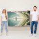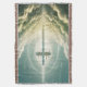 Croix bleue douce parmi des nuages moelleux au design typographique doré.