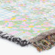 Un joli Throw Blanket, avec un joli motif de faux patchwork de Roses de chien rose sur un arrière - plan bleu ciel avec pois, rayures et plaids assortis. Une partie de la collection Posh & Painterly 'Rosy Posy'.