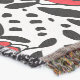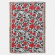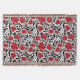 Fleurs rouges, noires et blanches, carrelage blanc motif cadeau d'anniversaire enveloppé avec trois motifs.