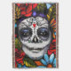 Jour floral vibrant de l'image morte sur une belle couverture. Les fleurs modifiées la tonalité par bijou riche entourent le visage d'une femme peint pour le jour mexicain des morts. Maintenez chaud et confortable tandis que vous prenez du temps de sentir les roses.
