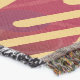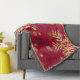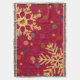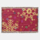 Une conception élégante moderne avec beaucoup de couches - filigranes de remous en arrière - plan, arc-en-ciel des points colorés de bokeh et étoiles d'or. Deux grands flocons de neige d'or honorent les coins. La couleur d'arrière - plan est un rouge lumineux. Cette couverture de jet ajoute un joyeux contact gai à votre décor de vacances de Noël.