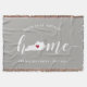 Montrez votre fierté pour votre état d'origine avec cette couverture grise rustique et mignonne avec le mot "home" en lettrage calligraphié blanc, où la silhouette de l'état du Kentucky remplace la lettre "O". Une illustration d'un cœur rouge à l'intérieur de la carte de l'état complète le design ; vous pouvez changer la position du cœur pour votre ville natale en ouvrant l'outil de conception et en faisant glisser la forme du cœur vers votre endroit préféré. Personnalisez avec votre ville natale, le nom de votre famille et l'année de fondation pour créer un cadeau de pendaison de crémaillère parfait et mémorable ou un ajout à votre nouvelle maison.