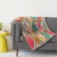Cette couverture de lancer a un design Boho de diamants avec différents motifs alternant avec des diamants solides dans une palette de couleurs Boho.