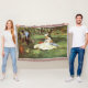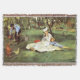 La famille Monet dans leur jardin. Edouard Manet. Paysage estival. Une femme en belle robe et casquette est assise dans le jardin sous un arbre sur l'herbe. Un garçon est assis sur l'herbe à proximité. Reproduction d'oeuvres d'art célèbres dans le domaine public.