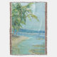 "Blue Coastal Lagoon" de Suzanne Wilkins. Il dispose d'une plage sereine avec des arbres tropicaux.